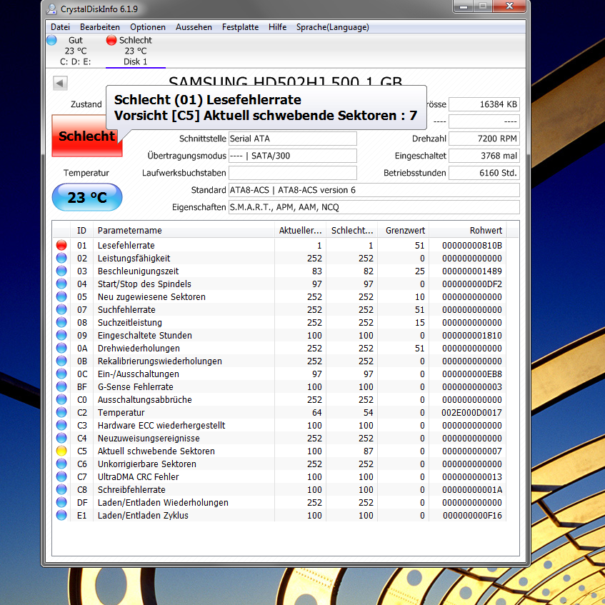 Nach mehrern gescheiterten Versuchen eine Samsung HD 502 HJ wieder lauffähig zu machen, wende ich mich als letzte Instanz an euch.