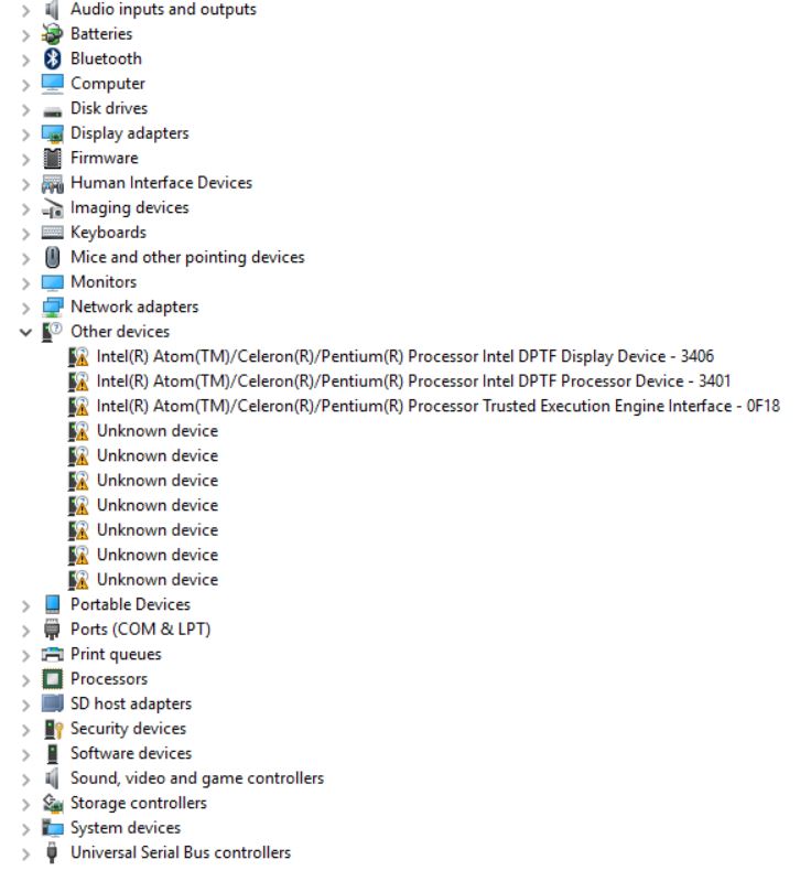 Ich bin ein Stückchen weiter. Ich konnte eins von den unbekannten System Devices installieren und nun habe ich Sound, Touch geht und die Batterie wird angezeigt. Aber nun sind wieder neue Geräte aufgetaucht die unbekannt sind.