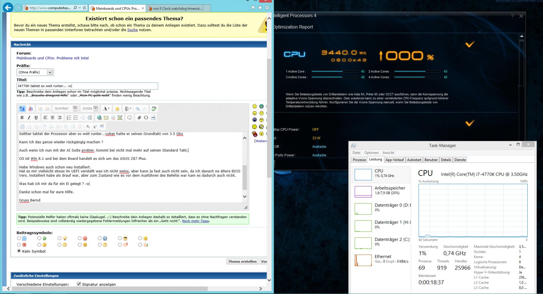 OS ist Win 8.1 und bei dem Board handelt es sich um das ASUS Z87 Plus.