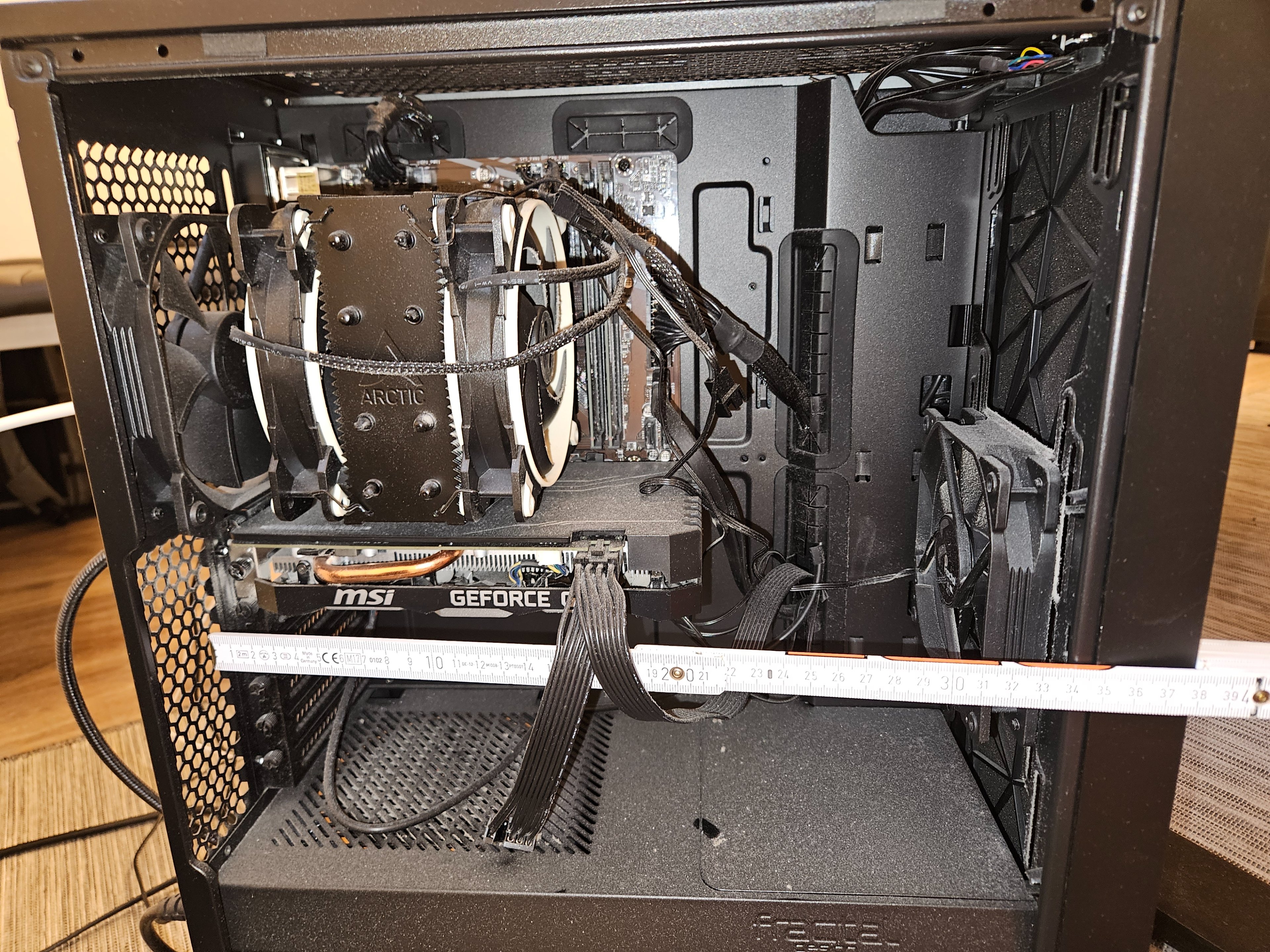 Ich habe ein 600 Watt Netzteil und würde das gerne auch behalten, um nicht zuviel umbauen zu müssen und natürlich aus Kostengründen. Die Frage wäre dann, welche Grafikkarten kompatibel damit sind. Ich kenne mich auch gar nicht mit den Strom-Anschlüssen aus (irgendwas mit 8 bzw. 6+2 oder mit 12V-2x6 - sind erstmal böhmische Dörfer für mich - was habe ich aktuell dort!?). Beim Zusammenbau von dem PC 2020 hat ein Kumpel geholfen und der wird mir sicher jetzt auch beim Tausch der Grafikkarte helfen können. Zudem sind ja noch Längenmaße von Grafikkarten zu beachten und auch wie viel Slots belegt sind, richtig? Habe daher versucht, davon möglichst gute Fotos zu machen. Es ist ein Micro-ATX-Board, keine Ahnung ob es deswegen noch zusätzliche Einschränkungen gibt?