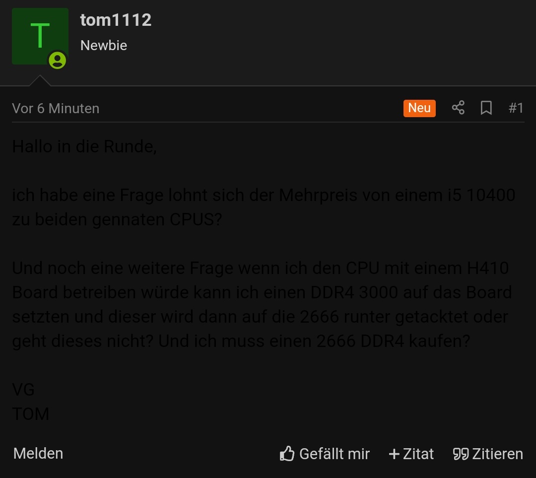 Und noch eine weitere Frage wenn ich den CPU mit einem H410 Board betreiben würde kann ich einen DDR4 3000 auf das Board setzten und dieser wird dann auf die 2666 runter getacktet oder geht dieses nicht? Und ich muss einen 2666 DDR4 kaufen?