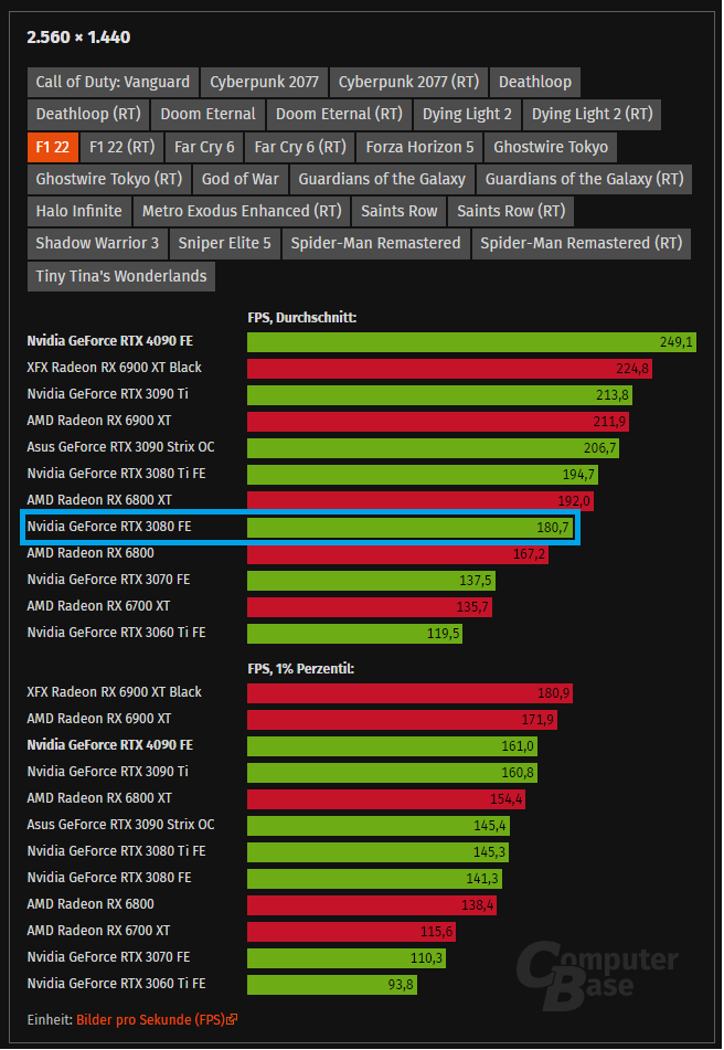 und auch in F1 2022 ist der 5800X3D weit voraus: