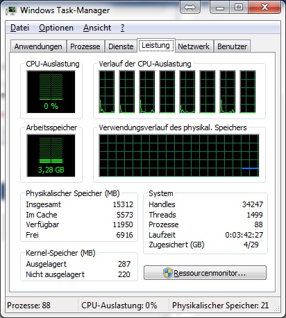 bei mir werden komischerweise im Taskmanager immer nur CPU 0 und CPU 1 angezeigt.