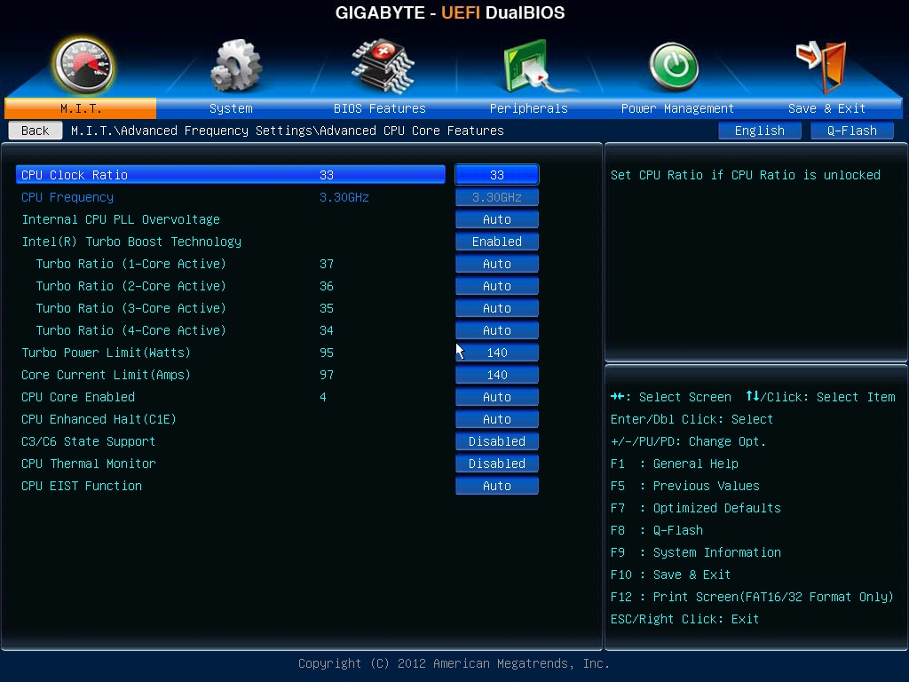 Habe im UEFI schon Turboboost erzwungen, also von auto auf enabled und jegliche thermal control dinger, EIST usw deaktiviert.