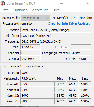 Jedoch habe ich nach 15min prim95 testen folgende Werte bekommen.
