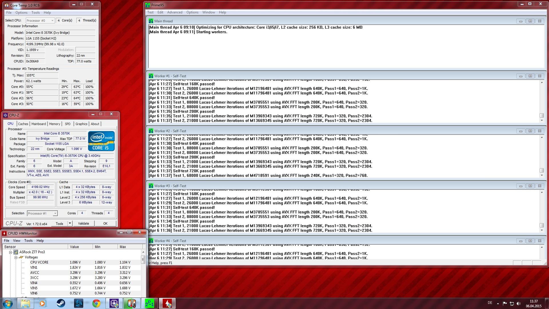 I5 3570k auf 4,2 GHz ohne Spannungserhöhung.