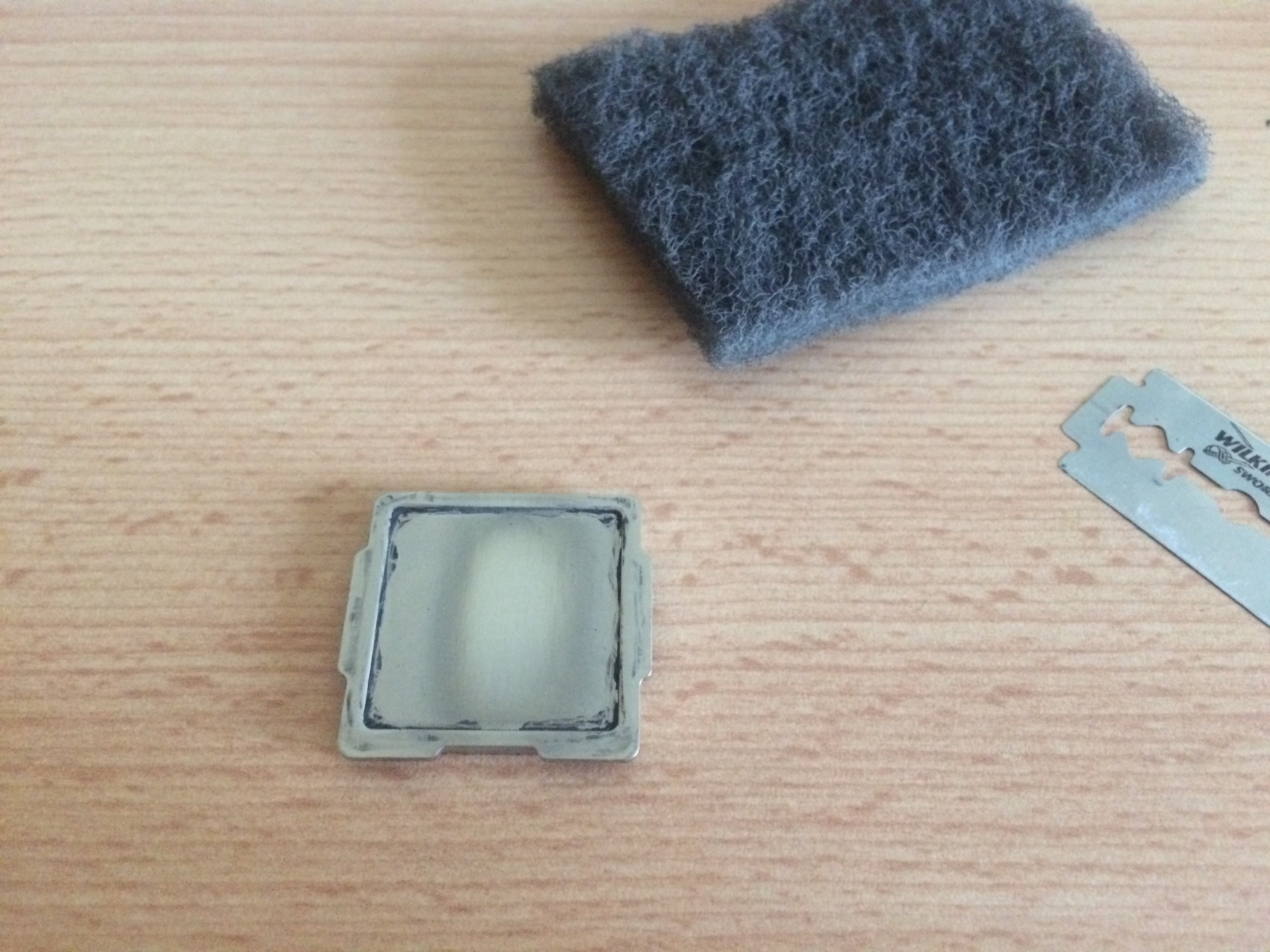 Habe zunächst, wie oben erwähnt, die Innenseite des IHS aufgeraut mit einem "Schleifschwamm", der beim Liquid Pro mitgeliefert wurde.