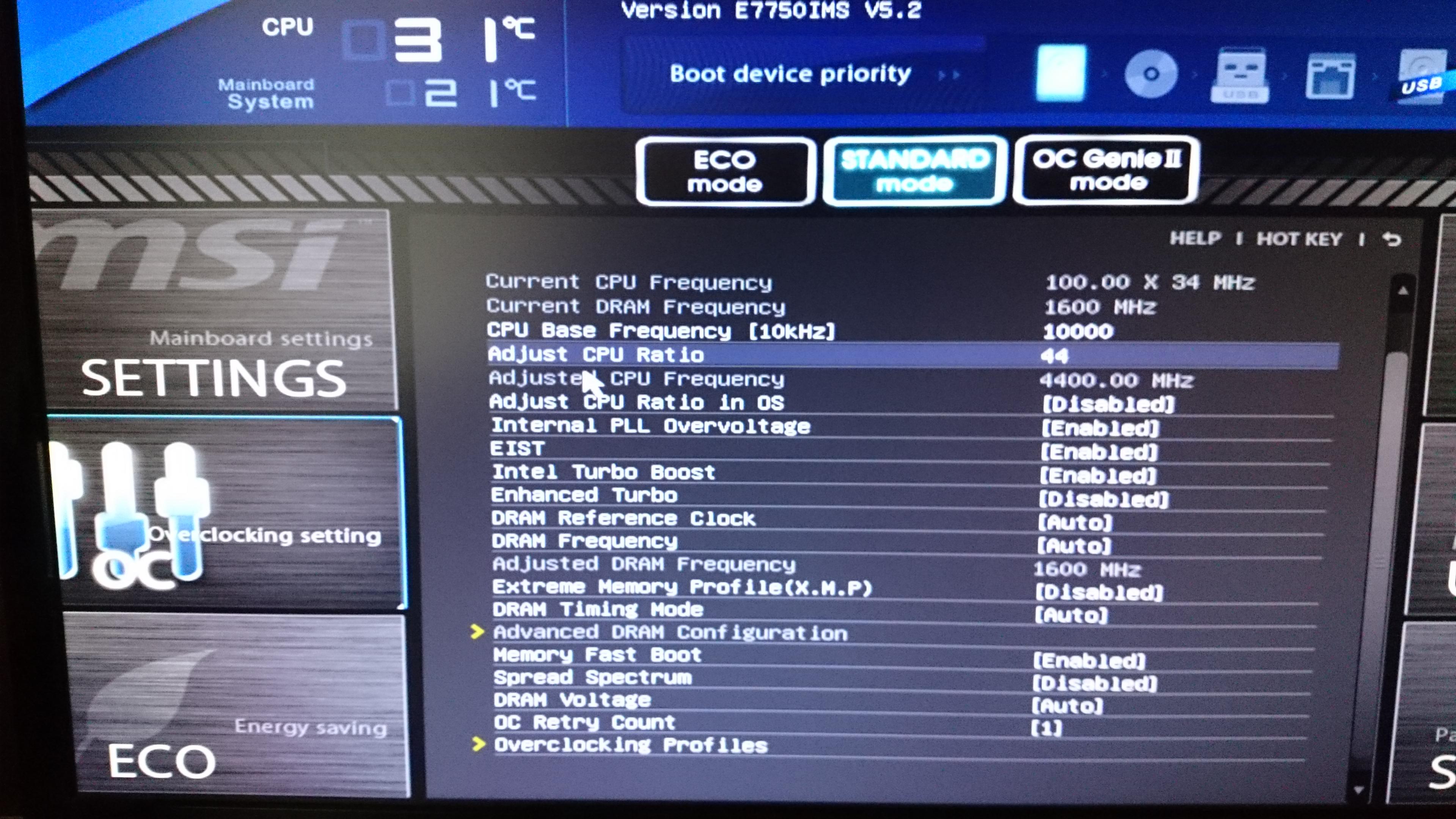Ich hab die Wahl zwischen ECO mode, Standard mode und OC Genie II mode. Ist auf Standard mode gesetzt. Klicke ich auf OC Genie II mode, dann warte ich...