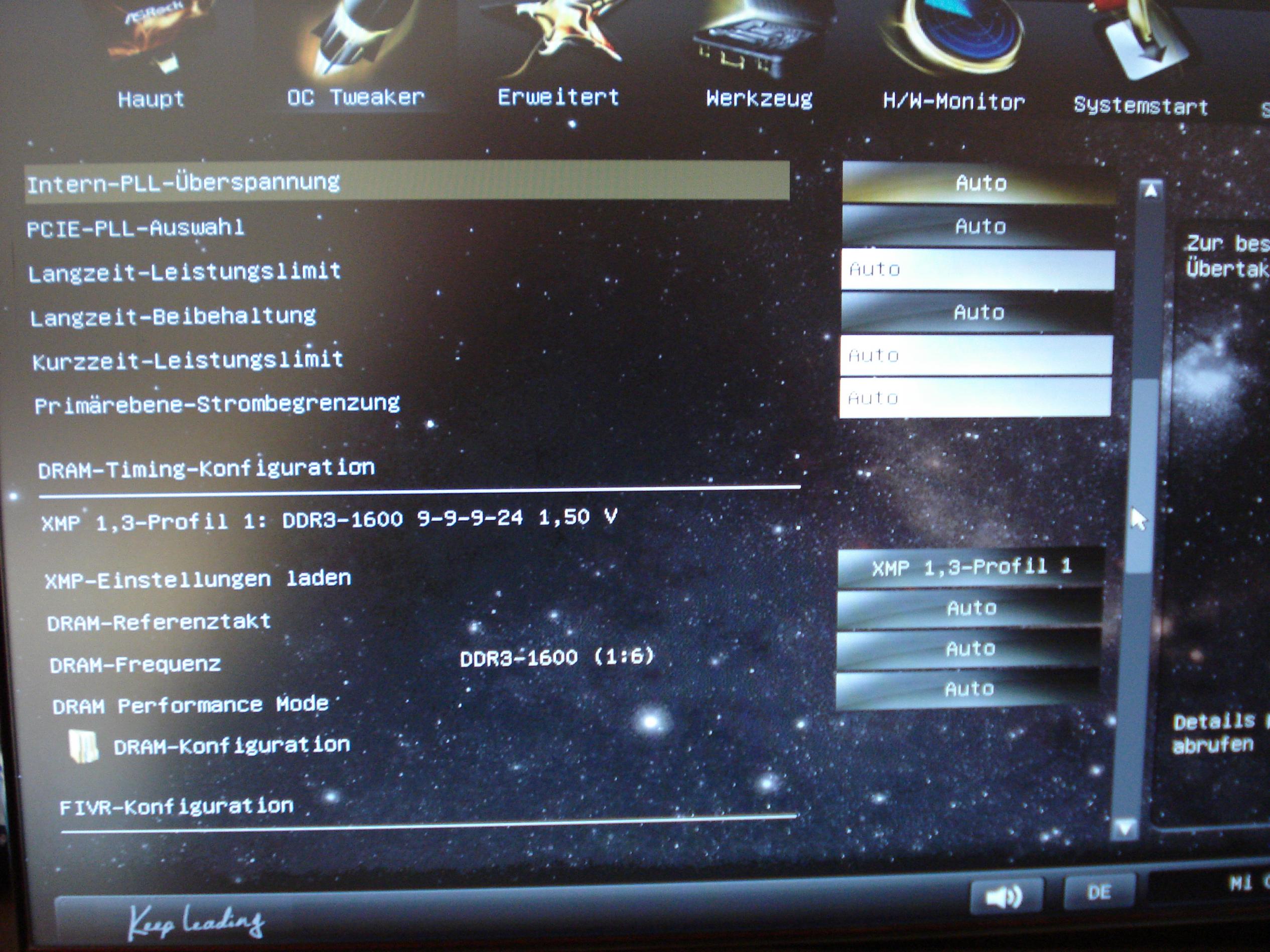 Ich werde meine BIOS-Einstellungen noch nachreichen, da ich im Moment noch auf Arbeit bin ;-).