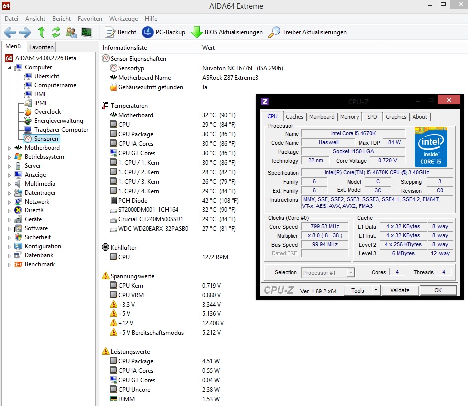 Nach ca. 30 Sekunden Prime95 war die CPU schon bei 85 Grad, und ich beendete den Test. Steht alles wieder auf default.