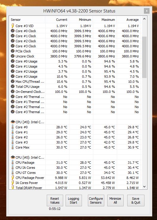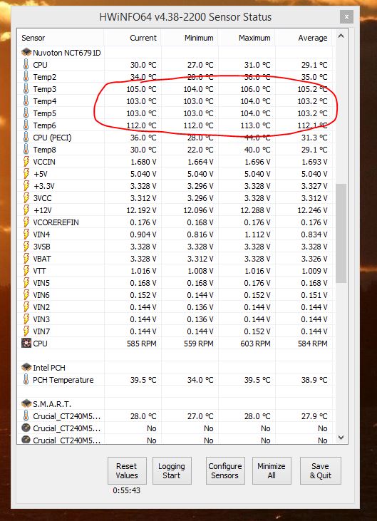 Was mich auch wundert: Es sind Temps mit über 112 Grad zu sehen, was ist das genau? Muss ich mir sorgen machen?