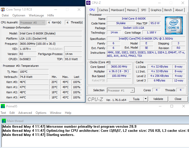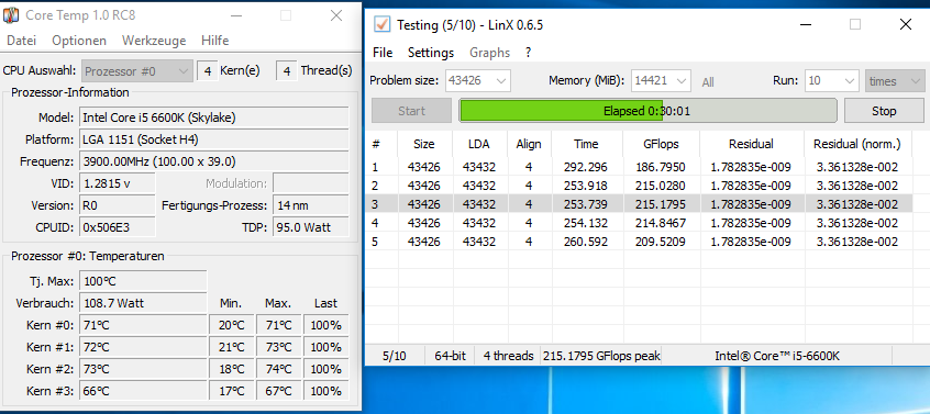 Zudem wird er auch recht heiß, trotz großen offenem Gehäuse und Noctua Kühler. Nach ca. 30min unter linX schaffe ich locker 80°C, was ich für 14nm und gutem Kühler viel finde.