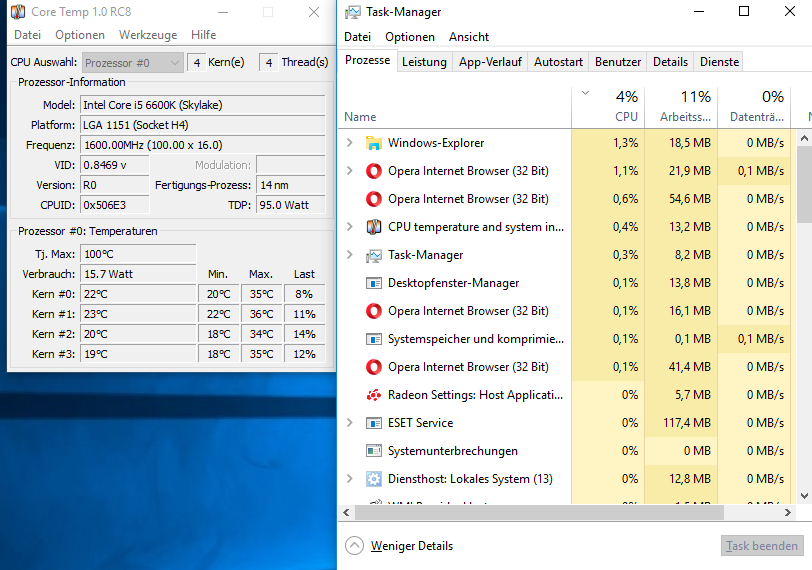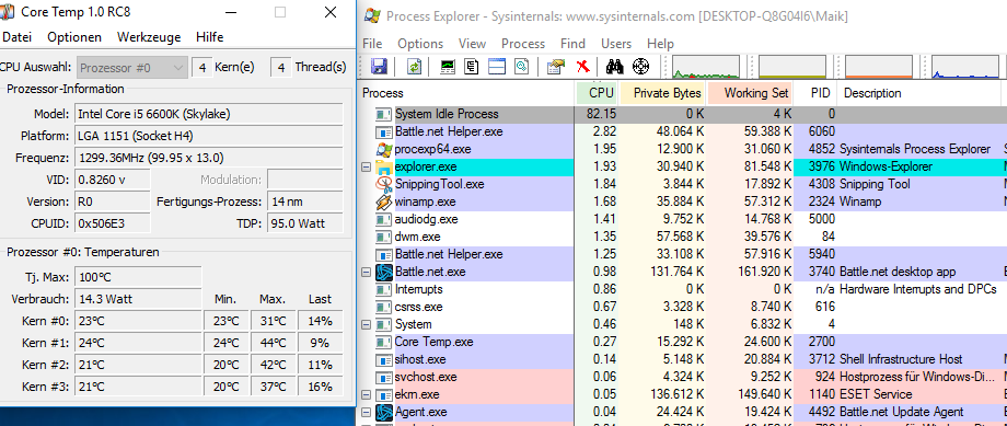 Etwas erstaunt bin ich allerdings über die Coreauslastung des i5 6600K. Ich habe stellenweise 50% und mehr Coreauslastung, obwohl gerade mal nur Firefox, Battle.net und Skype offen ist. Wenn ich noch ein Spiel nebenher z.B noch HotS offen habe, dann sind es auch schnell mal 60-70% Auslastung.