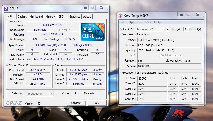 Bei extremer Belastung (bei BFBC2) hat er sich langsam an 72C° gesteigert doch höher ist er nie gekommen.Doch die 72C° sind nur bei einem Core , die anderen sind alle unter 70 also bei 66-69.(Nach BFBC2 gehen sie schnell wieder in den 27-30C° Bereich)