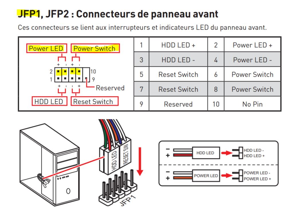 Angeschlossen habe ich den Power SW und die LEDs wie unten in der Anleitung am JFP1. Ausseer das wäre nicht korrekt was ich mir aber nicht vorstellen kann?