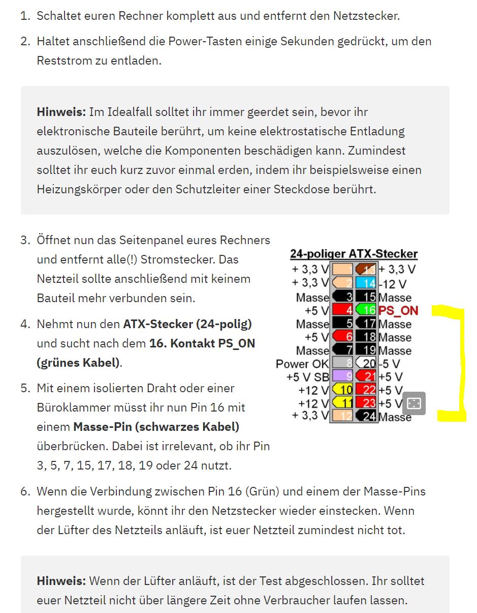 Ich habe gestern den Untenstehenden PC zusammen gebaut. Beim einschalten keine Reaktion. Nicht ein mal die Status LED oder ein zucken vom Lüfter.