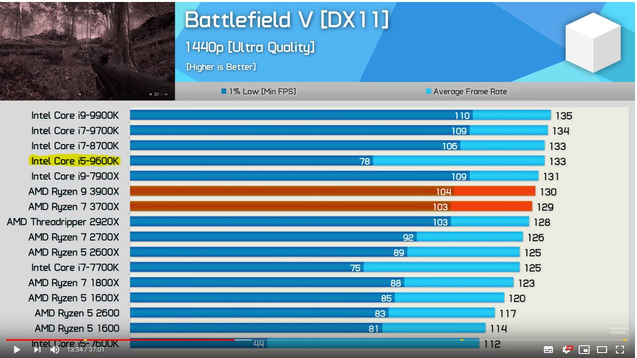In dem benchmark fehlt der 3600. Der dürfte kaum 10fps langsamer sein als der doppelt so teure i9.