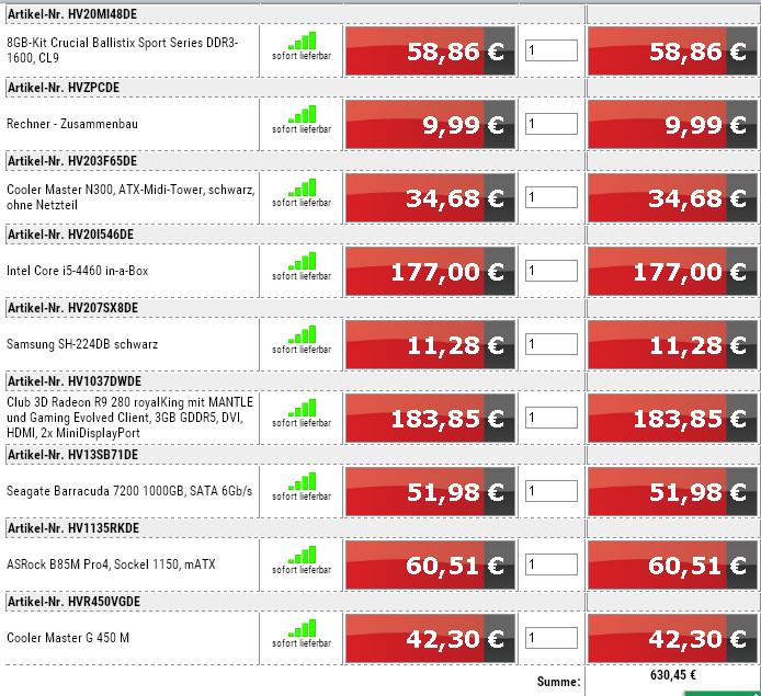 1 x Gehäuse: http://www.hardwareversand.de/Midi/107463/Zalman+Z3-Plus+Midi-Tower+-+weiß,+ohne+Netzteil.article 39,- bei HWV