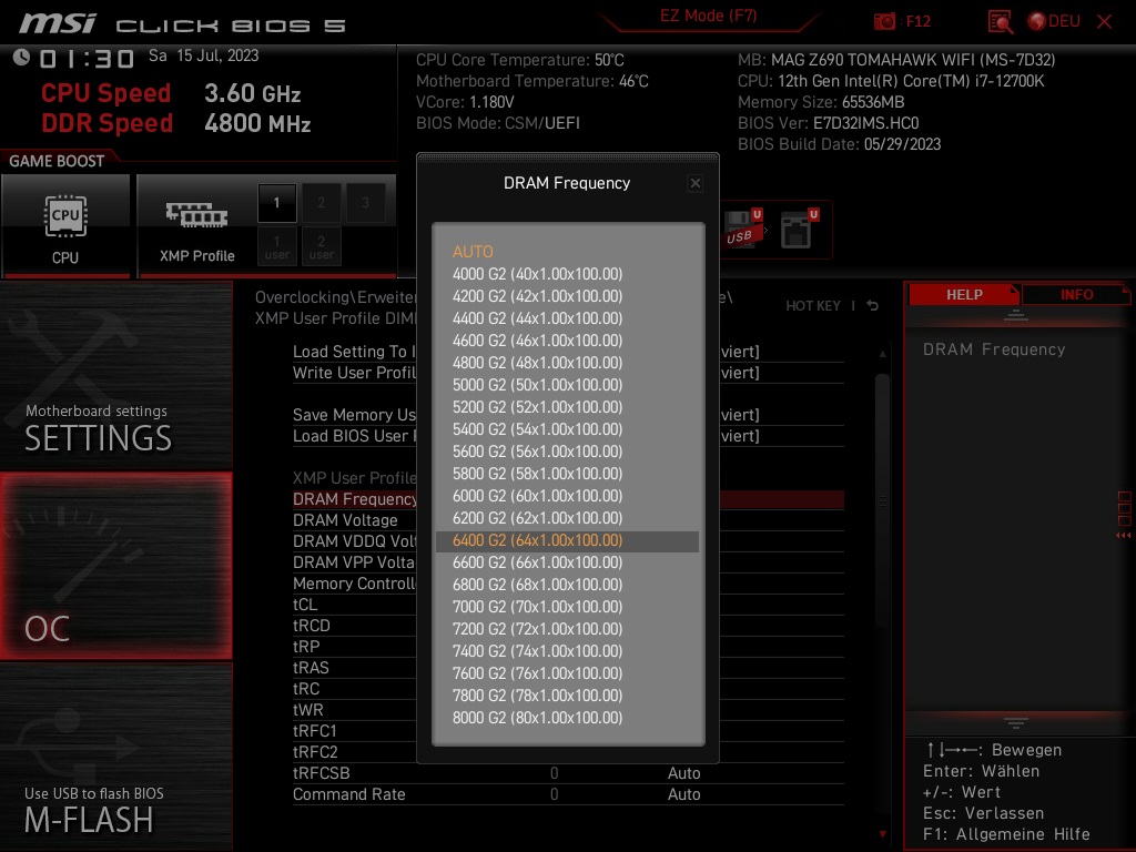 Die 6000mhz Riegel liefen im XMP Profil problemlos.