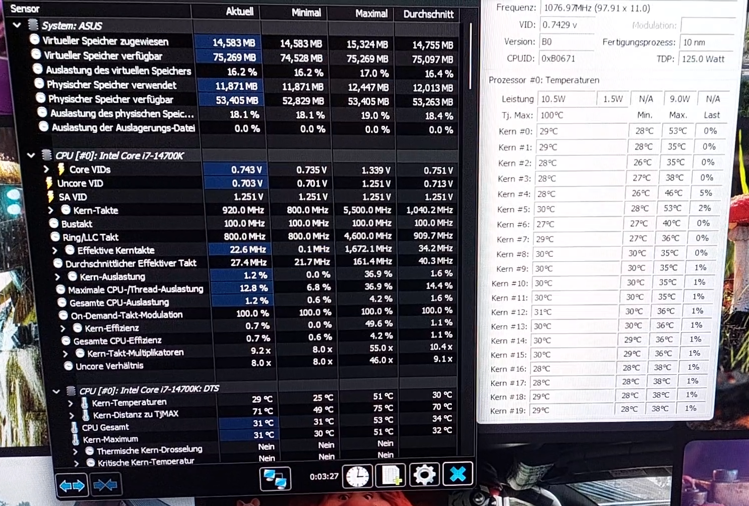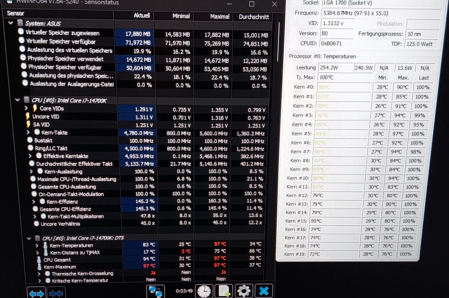 - Prozessor (CPU): Intel i7-14700k (Max. Power-Limit eingestellt auf 253 Watt)