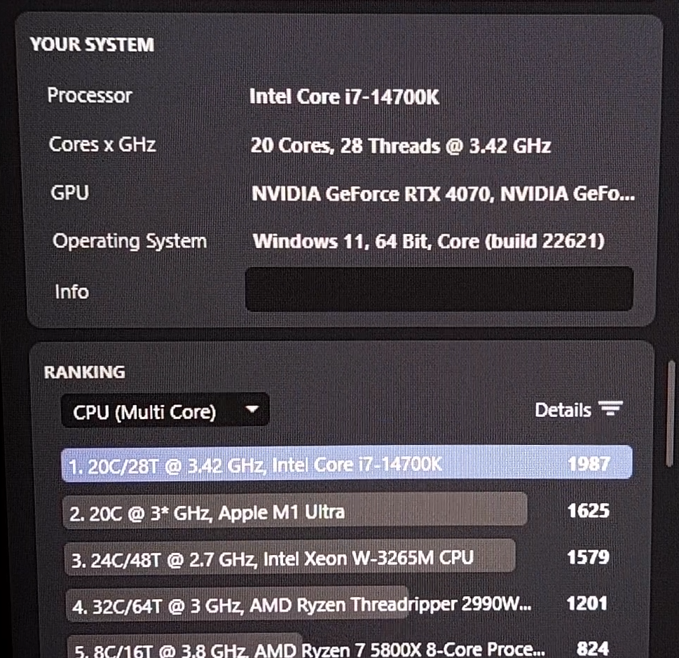 - Das Ergebnis des Cinebench 2024 Multi-Core-Tests (1.987 Punkte). Ist das Ergebnis eher gut, oder eher schlecht?