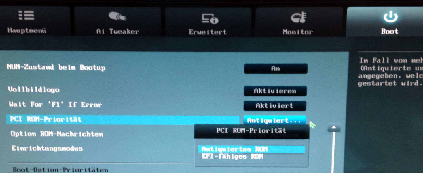 Interessehalber würde ich deshalb gerne wissen, wo man die Option PCI Rom Priorität genau findet.