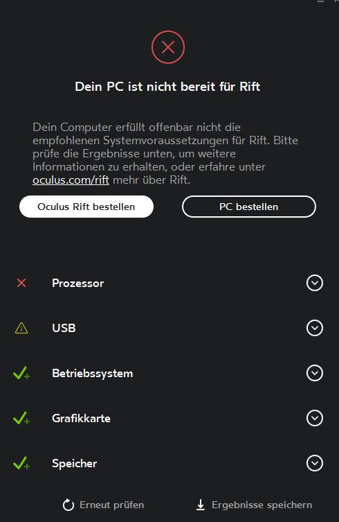 mit dem steam vr tester habe ich sehr gute ergebnisse erreicht. aber OC Rift sagt mein pc traugt nicht ?