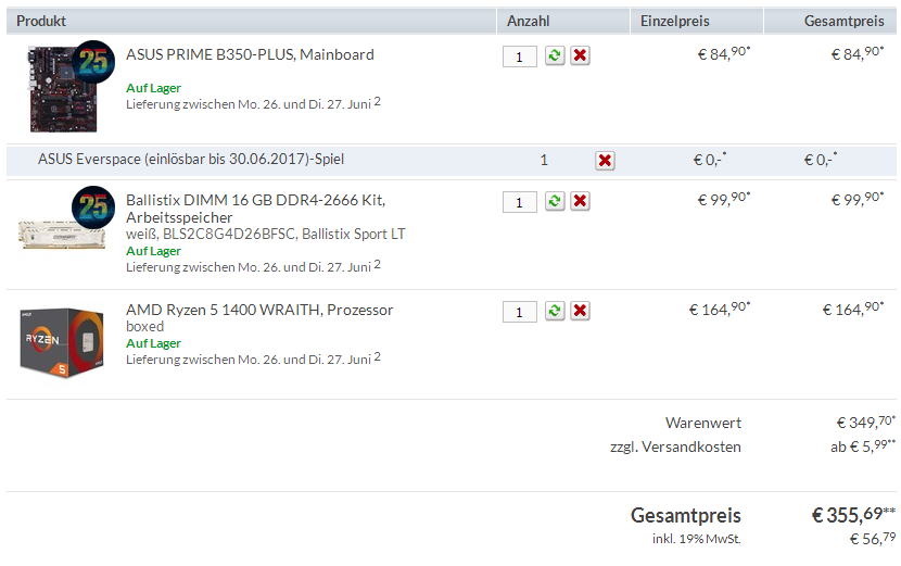Mein Budget ist auch relativ beschränkt - ca. 350 für CPU,Board,RAM. Je günstiger, desto Besser.