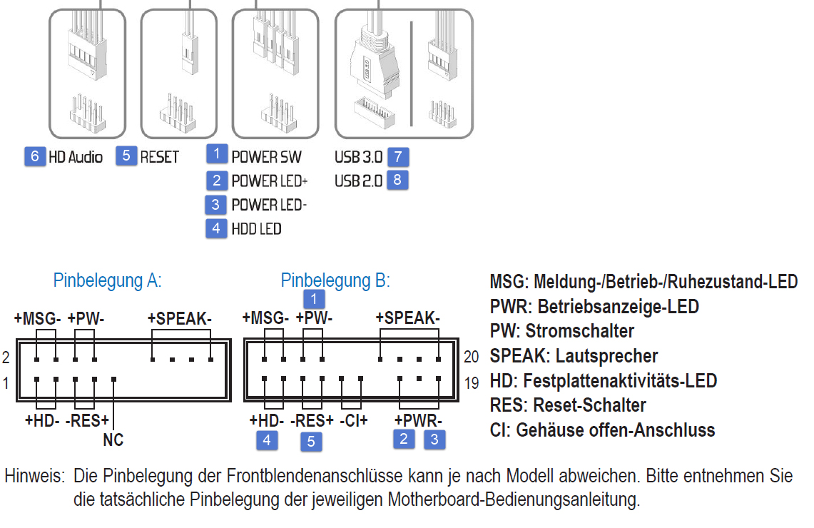 Die Kabel für, Pc power Knopf USB Sound etc. wo kommen die alle rein, im Handbuch von Gigabyte ist das leider nicht so gut beschrieben.