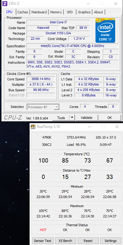 Ich habe seit einigen Tagen das Problem, das meine CPU sowohl in Benchmarks als auch in spielen beachtliche Temperaturen nach sehr kurzer Zeit erreicht. Mein 4790k ist nicht übertaktet. Ich habe lediglich die Voltage des Stock-Takts auf 1.210 abgesenkt.