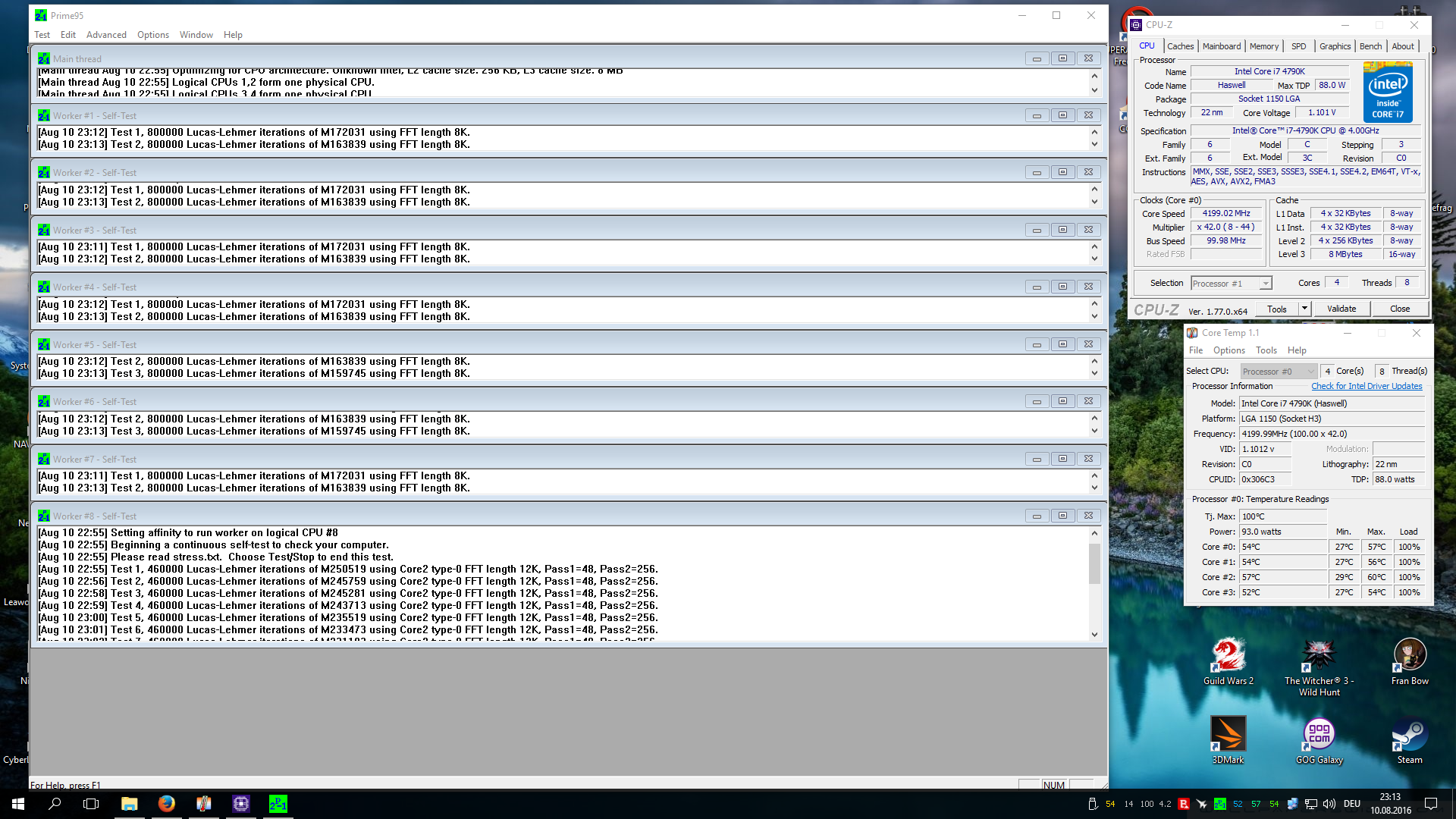 - Volllast(Prime 26.6 / Small FFTs) Bereits nach einigen sekunden bei 95+°C. Meistens nach ca. 1 Minute ist Core 1 auf 100°C