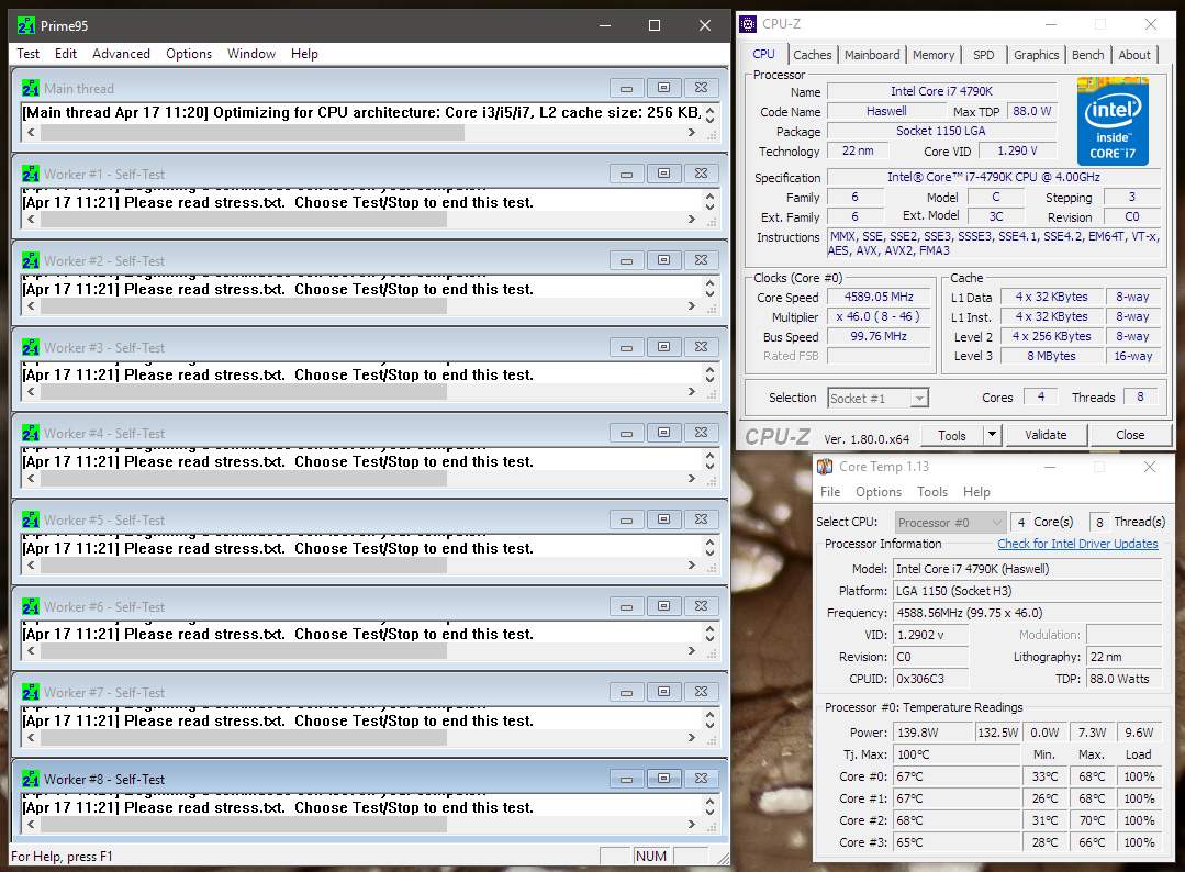 ich habe mir vor Kurzem einen geköpften i7 4790k als Upgrade zu meinem Xeon 1231v3 gegönnt (war mit Verkauf des Xeons fast ein Nullsummenspiel). Der i7 läuft auf 4,7 GHz mit 1,31V und auf 4,6 mit 1,28V in Spielen stabil.