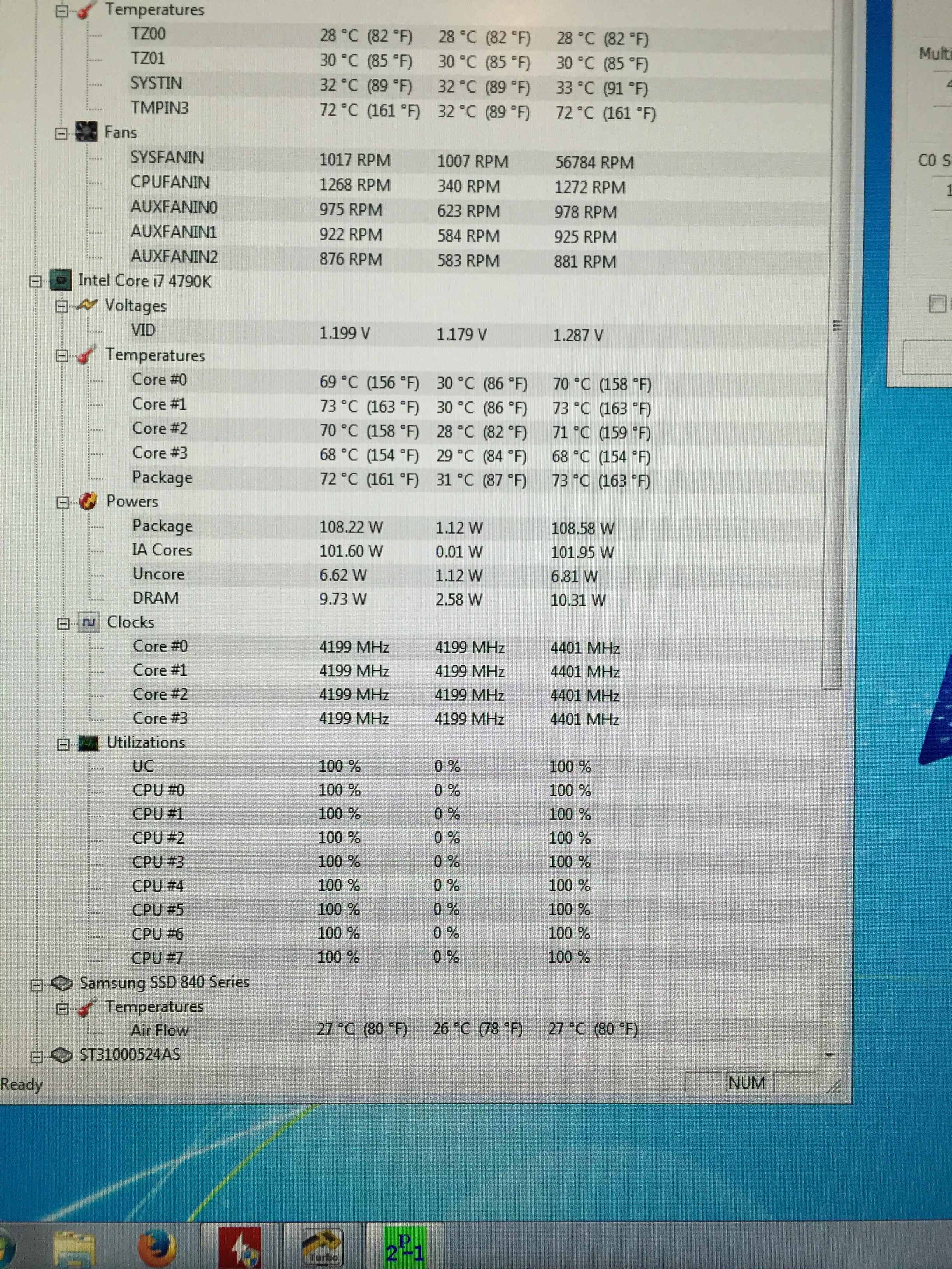 Man beachte auch den einen Gehäuselüfter, der auf einmal 50 000 RPM macht..