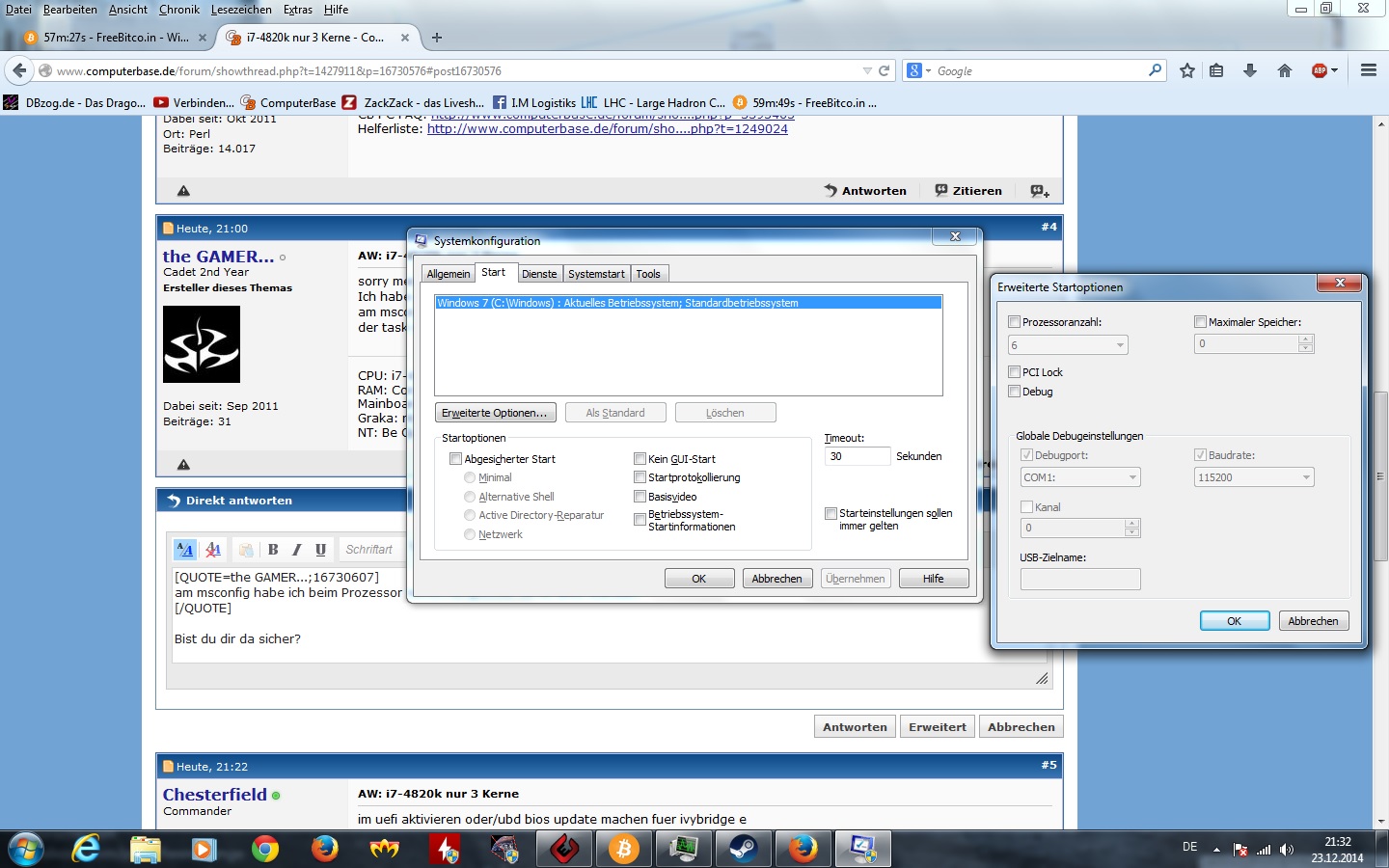 am msconfig habe ich beim Prozessor nichts rumgestellt da ist alles standart