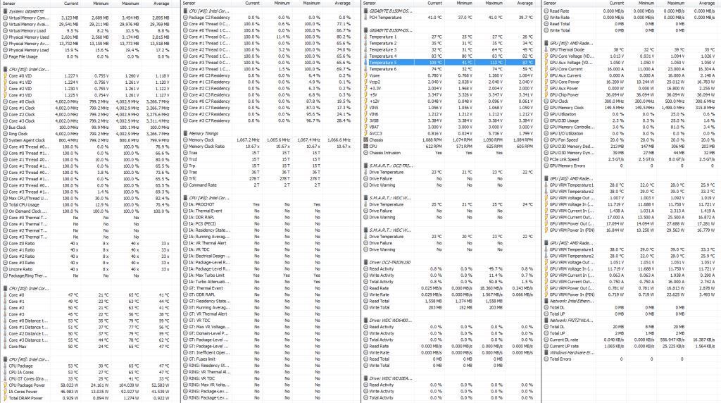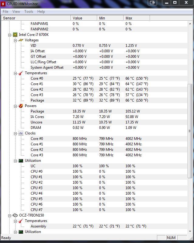 Das Ganze spiegelt sich auch im HWMonitor wieder: