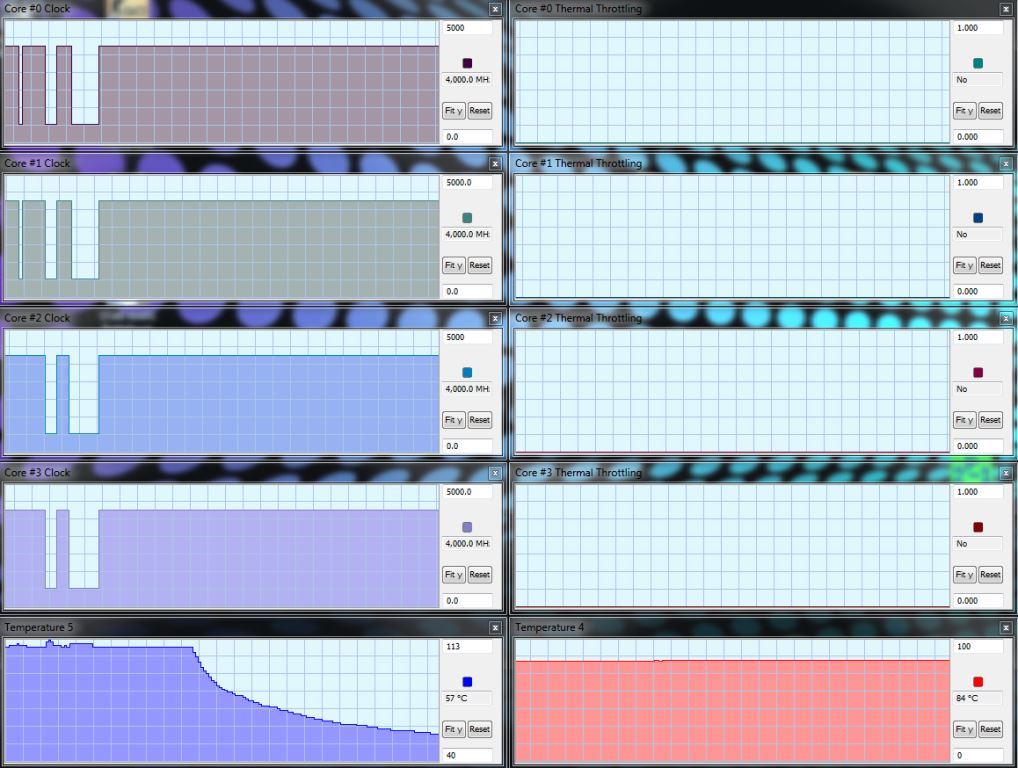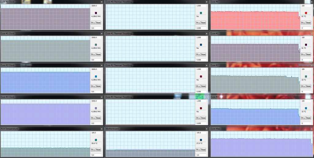 Die Temperaturen springen, genau wie der Takt im ca. 1/10sec-Takt, bewegen sich aber in sehr guten Bereichen.