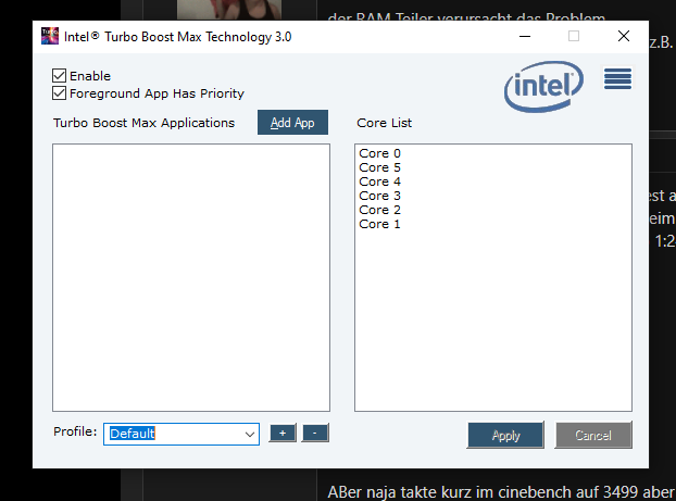 Nur so ist Intel Turbo 3 nicht aktiv.