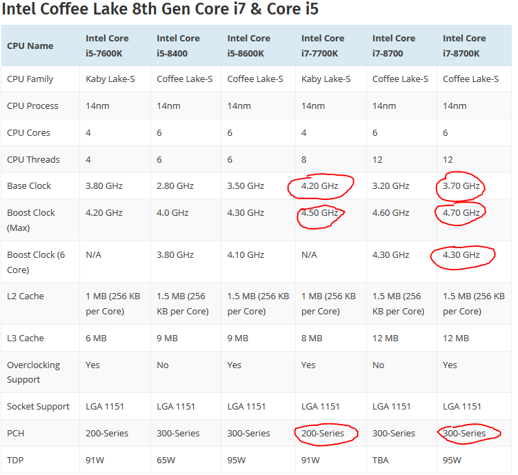 Da ja ende des Monats der i7 8700K auf dem Markt kommt und dieser 6 Kerne hat auf einem 1151 Sockel liegt es nahe diesen auch zu kaufen. Was mich aber ein wenig irritiert ist die Leistungs Tabelle. Der 8700K hat zwar 6 Kerne aber er taktet etwas langsamer. Ist das entscheidend? Denn laut Intel soll er ja bis zu 15% mehr Leistung bringen gegenüber dem 7700K. Und was ich noch wissen möchte ob ich auf ein neues Mainboard warten sollte mit PCH300 oder kann man noch die älteren Boards kaufen zb. MSI Z270 GAMING PRO (Bios upate voraus gesetzt) Macht das Sinn oder habe ich damit was falsch verstanden?