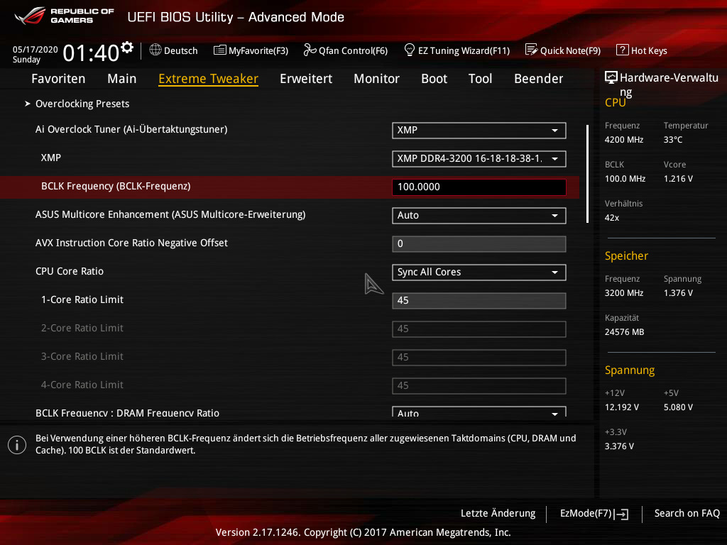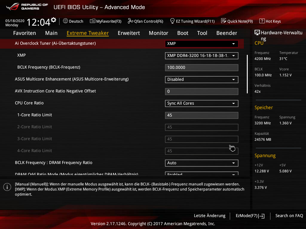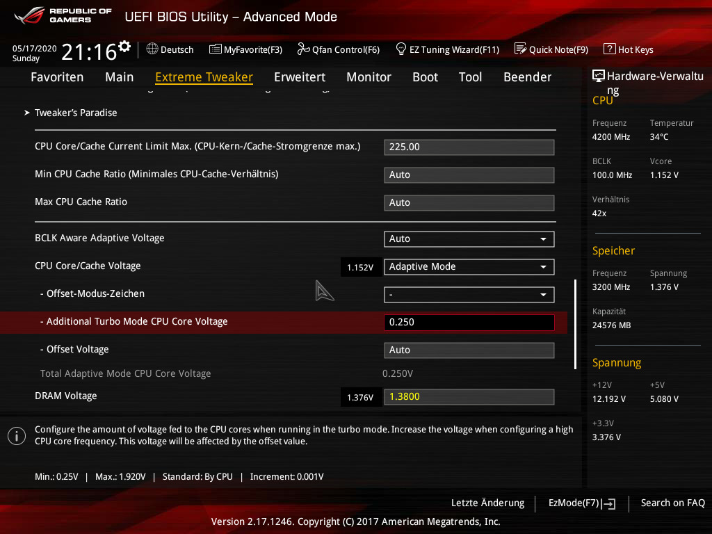 Ich möchte die CPU nun aber lieber wieder Standart laufen lassen 4,2 + 4,5 Ghz mit der möglichst geringsten Spannung , und niedrigster Temperatur um Energie zu sparen.