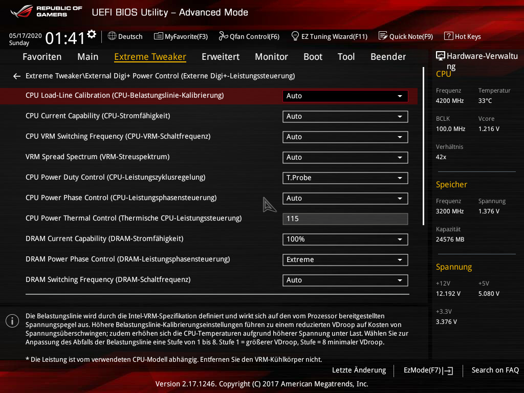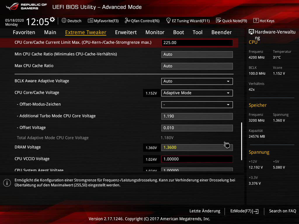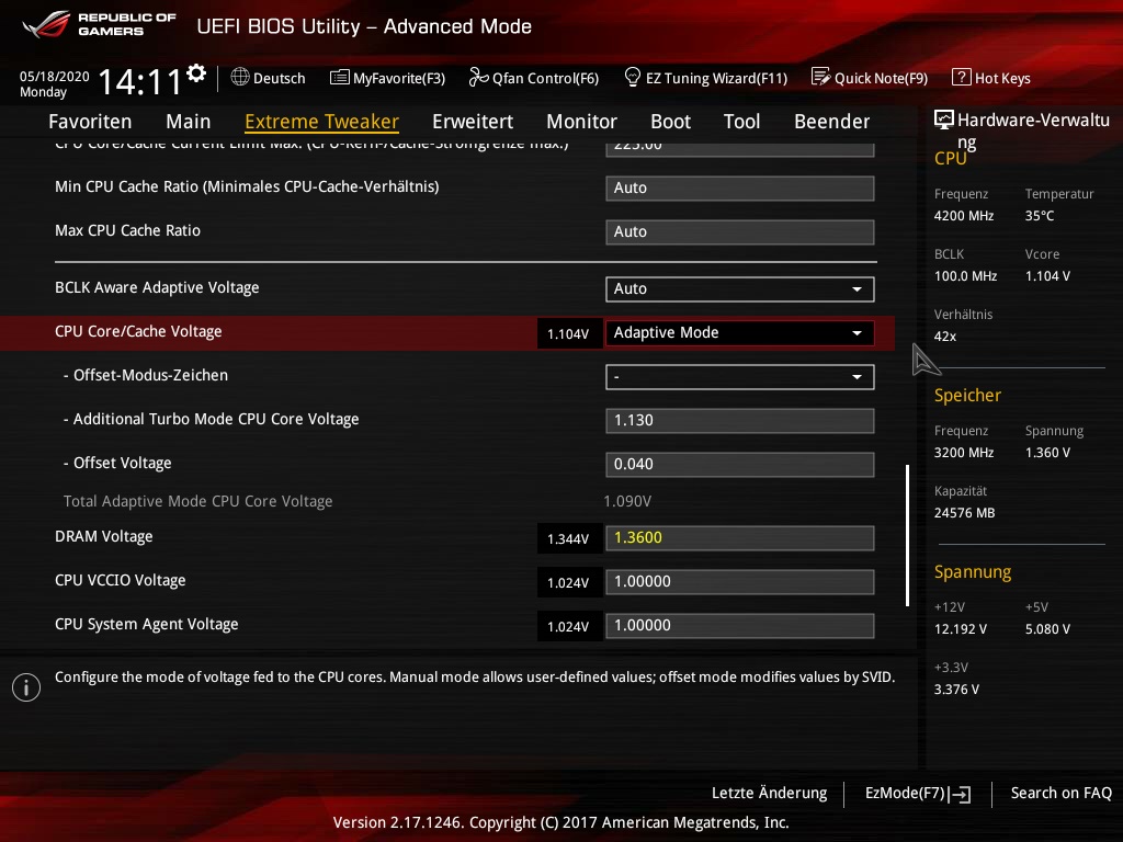 Habe mal ein paar Bilder hochgeladen von den Settings im Bios , und was angezeigt wird unter AUTO Volt + Manueller Volt