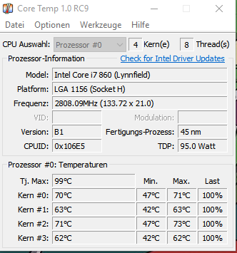Hallo, ich habe folgendes Problem mein I7 860 (Stock: 2,8 GHz) übertaktet auf 3,4 GHz wird geht bei Prime95 auf bis zu 97°C hoch. Was mich nur verwundert ist, das nur der 3. Kern so Warm wird, der erste liegt mit knapp 94°C was meiner Meinung nach auch zu hoch ist, aber halt schonmal 3 Grad kühler und Kern 2 und 4 liegen bei ca 80 Grad. Als Kühlung verwende ich eine Corsair H60i Wasserkühlung. Kühler.
