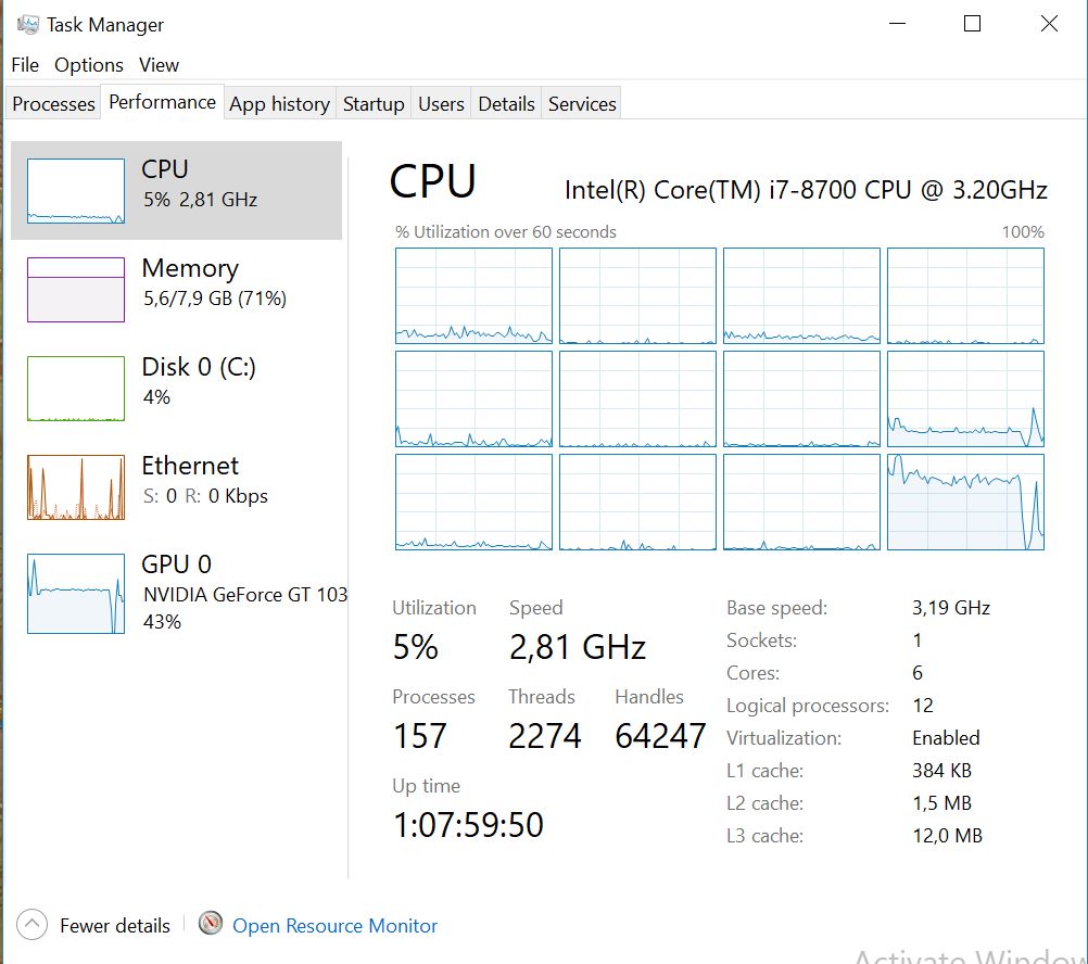 Also nochmals: In windows taskmanager sehe ich der letzte Core läuft auf 100%, die anderen jedoch nicht. Afterburner zeigt jedoch alle Core laufen mit derselben Ghz, jedoch ist der letzte Core wärmer.