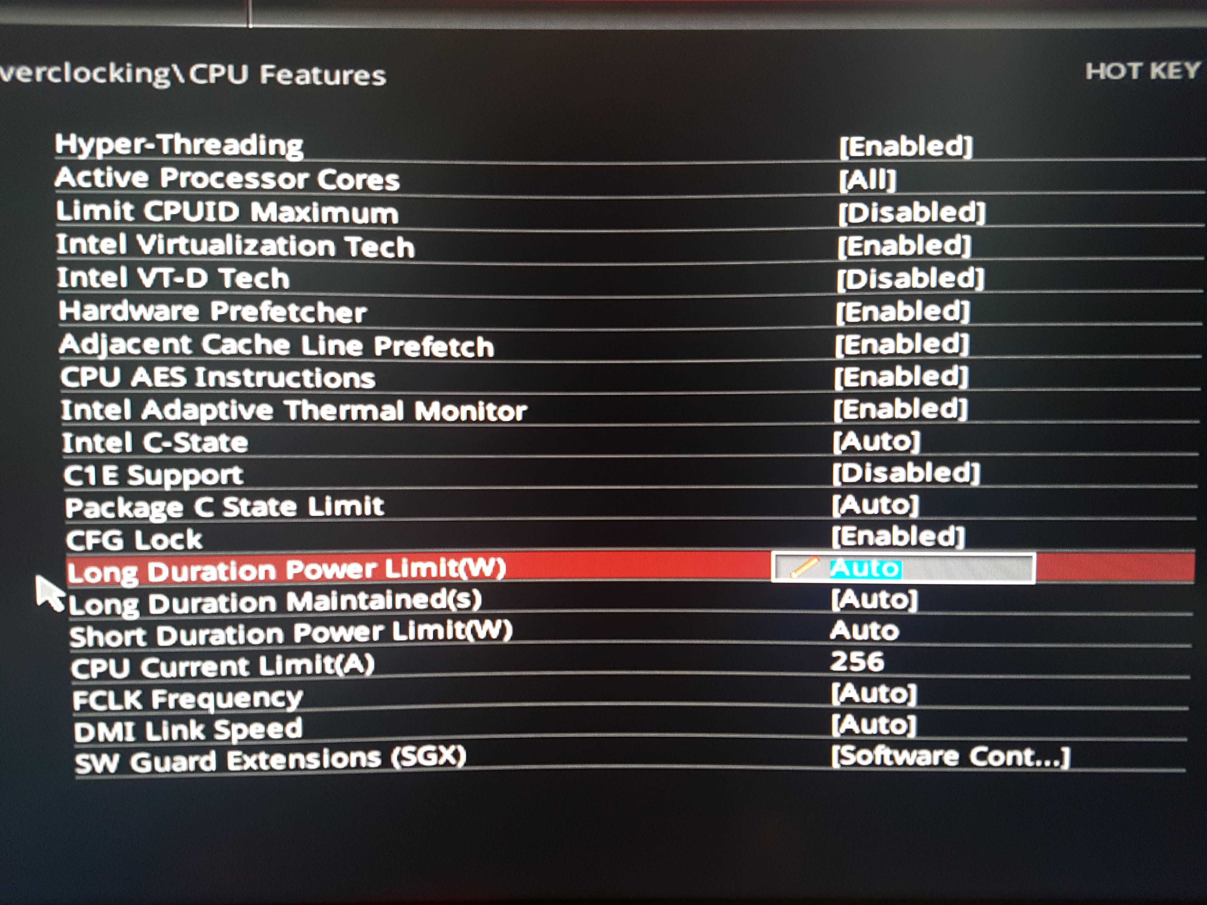 CPU CURRENT LIMIT: 256