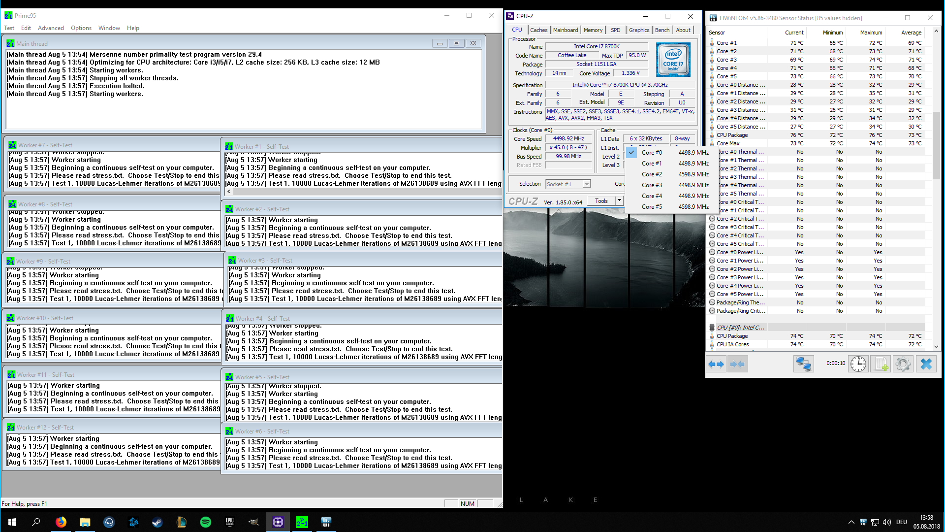 Mein Problem ist das die CPU im Prime95 test den Takt nicht hält