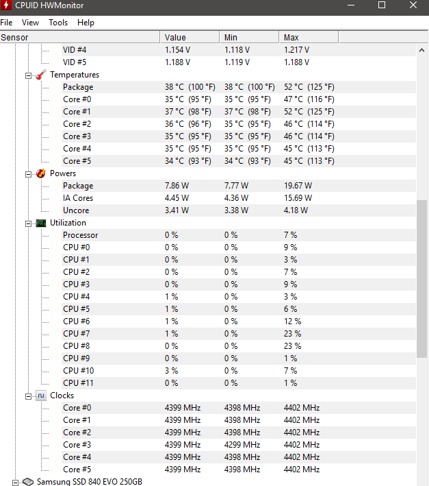 Nur taktet der I7 8700K mit 4,3 ab und zu sogar mit 4,4GHz im Idle (dementsprechend auch hohe temperaturen bis zu ca 48 Grad im idle)