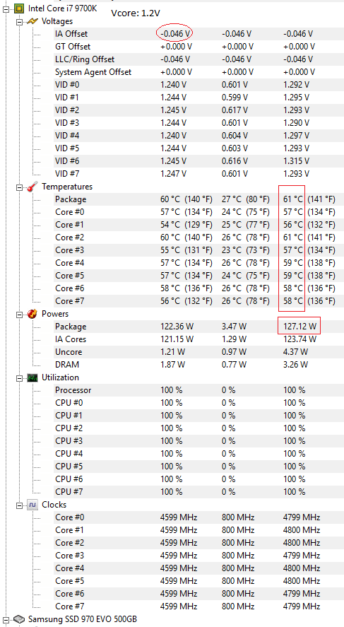 Das die Core i7/i9-9***er beim Gaming in den mittleren bis hohen 90ern hängen ist völlig normal.