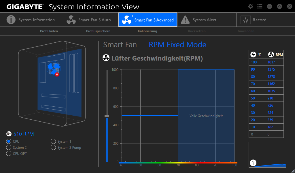 Ausgeglichen. Also bis jetzt habe ich 3 durchläufe wobei der Lüfter nicht mit hochdreht sondern bei ca. 500 dreht und um die 66 Grad und weiter steigend.