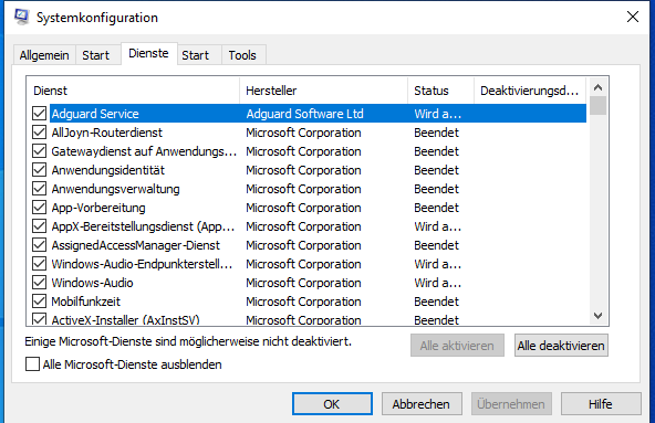 Ausführen: msconfig - Reiter Dienste - alle Microsoft-Dienste ausblenden.