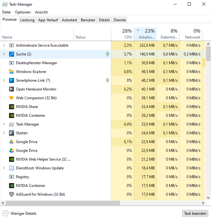 Mach mal den Reiter Prozesse auf und Klick auf Arbeitsspeicher. Nicht wundern, bei dir sieht der Task Manager leicht anders aus.