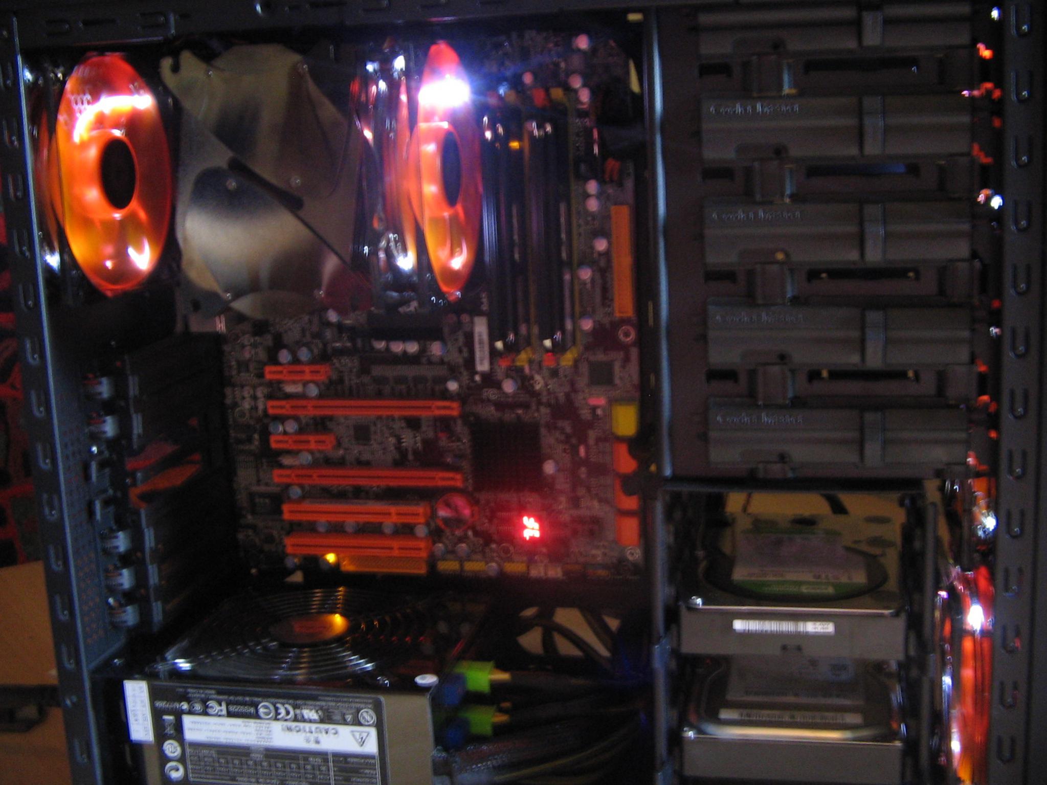 Als ich angefangen habe mich intensiv mit PCs zu beschäftigen hab ich mir ein CoolerMaster Cosmos S geakuft. Zu dieser Zeit hab ich hauptsächlich in Träume investiert wie z.B. Cosmos S damit auch Tripple Sli Platz hat sofern ich es mir mal leisten kann, 850 Watt Netzteil für selbiges um nur 2 Beispiele zu nennen. Als ich dann älter und bescheidener und realistischer wurde hat es mich genervt da es einfach viel zu groß und zu schwer war. Ich habe mich dann für nicht unnötig große, schlichte Gehäuse interessiert und wollte mir ein OrigenAE S21T nachbauen (Mein Tagebuch), habe das Projekt aber nach einer gewissen Zeit abgebrochen, da es doch nicht das "Richtige" war. Daraufhin habe ich mir mein jetziges CM Storm Scout zugelegt, mit dem ich auch sehr zufrieden bin.